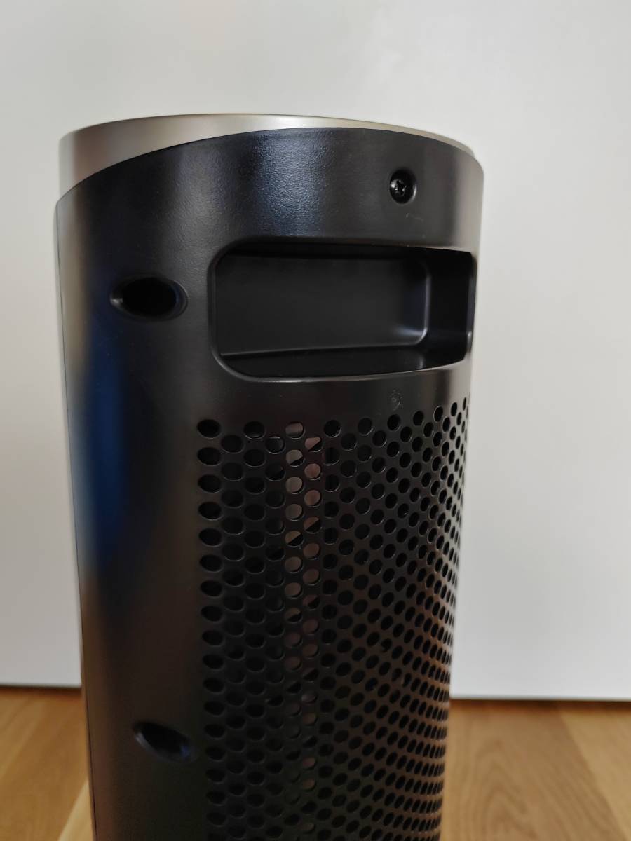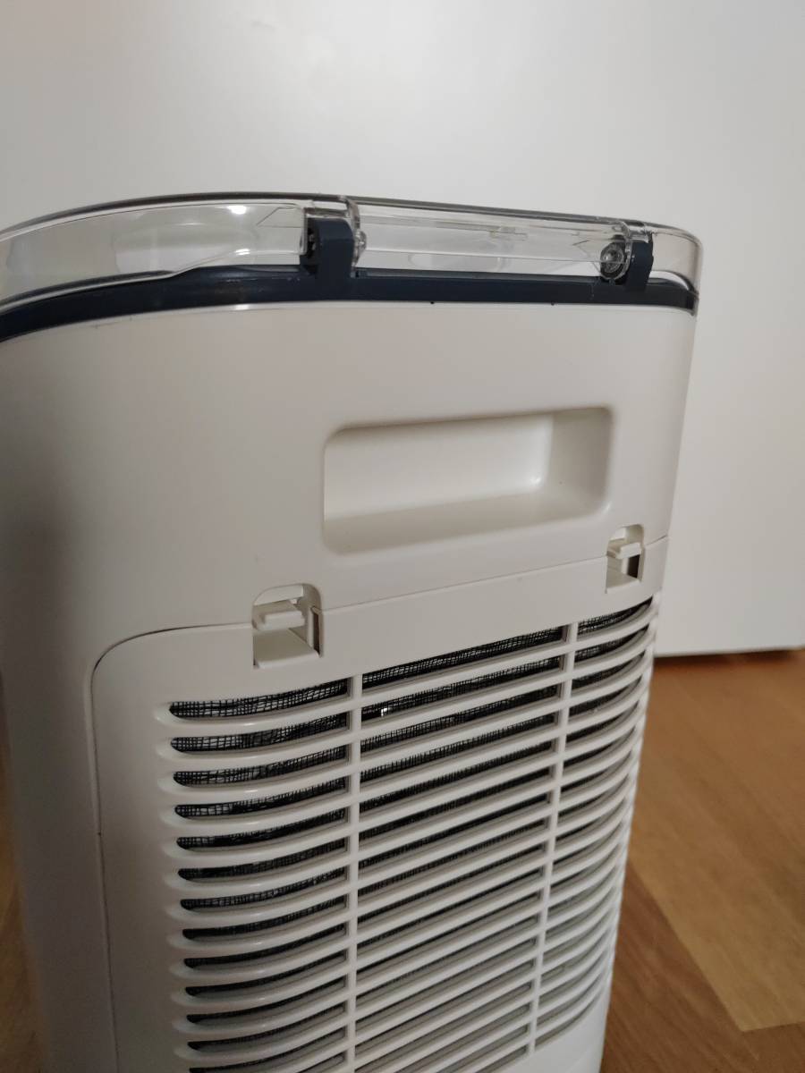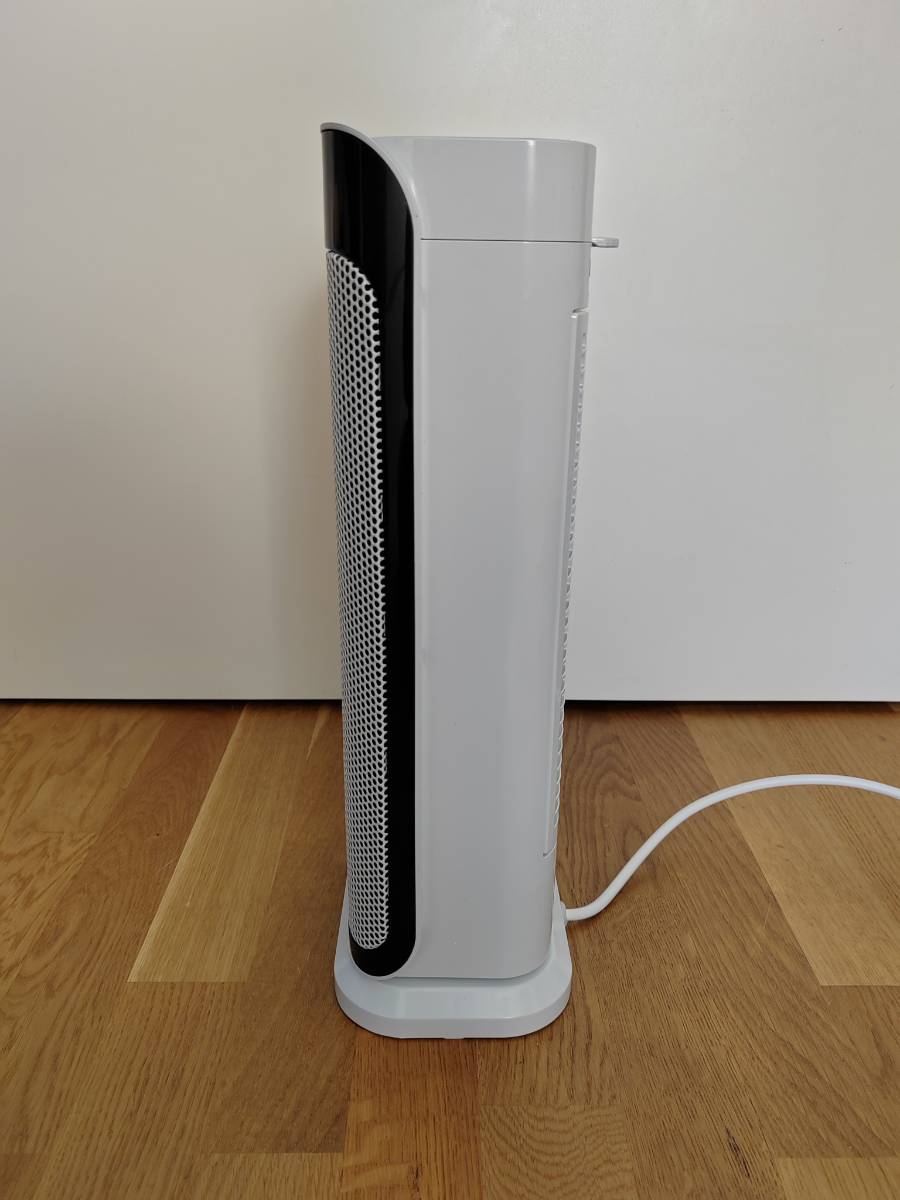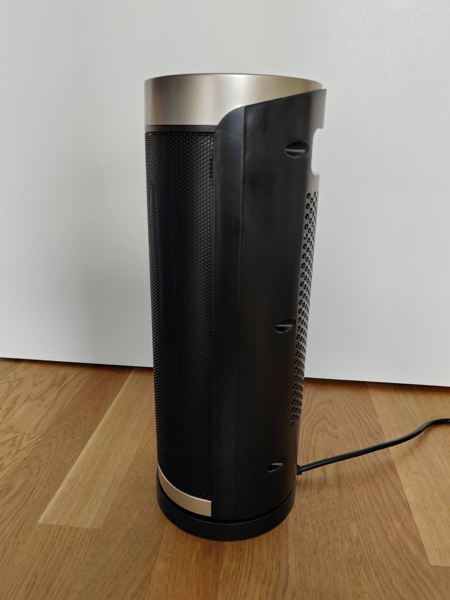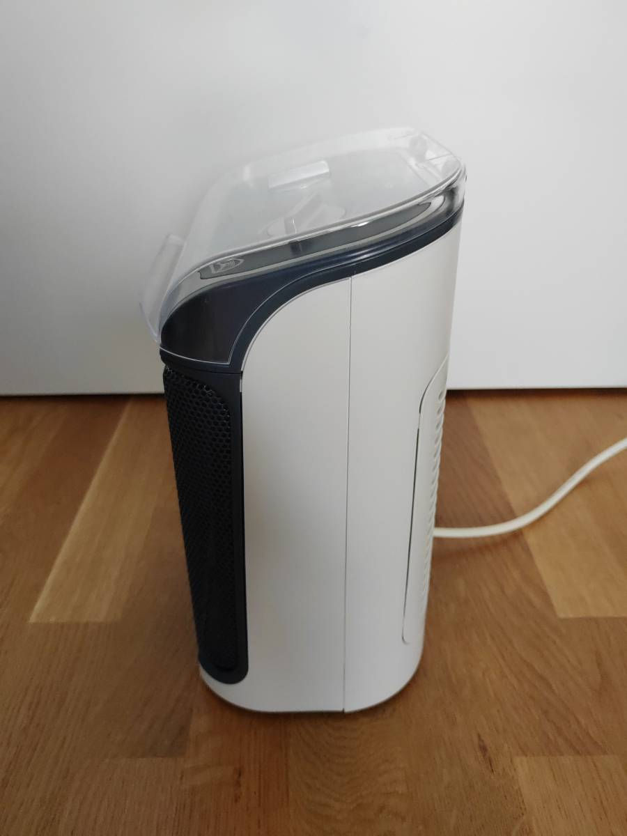 The design is simple and unobtrusive so that it fits easily into any interior. The volume of the appliance is comparable to that of a quiet hairdryer - not completely silent, but not annoying either. However, I wouldn't leave it running continuously during activities such as watching TV or listening to music, as the continuous noise can be a little distracting in the long run.